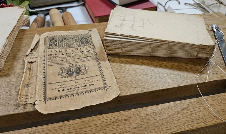 Soins délicats pour livres anciens et modernes, redonnant vie aux pages abîmées avec respect et savoir-faire artisanal.
